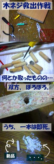 ワラと化した木ネジは、全部ほじくり返しても、やっぱりワラのままだったわけで・・・。
